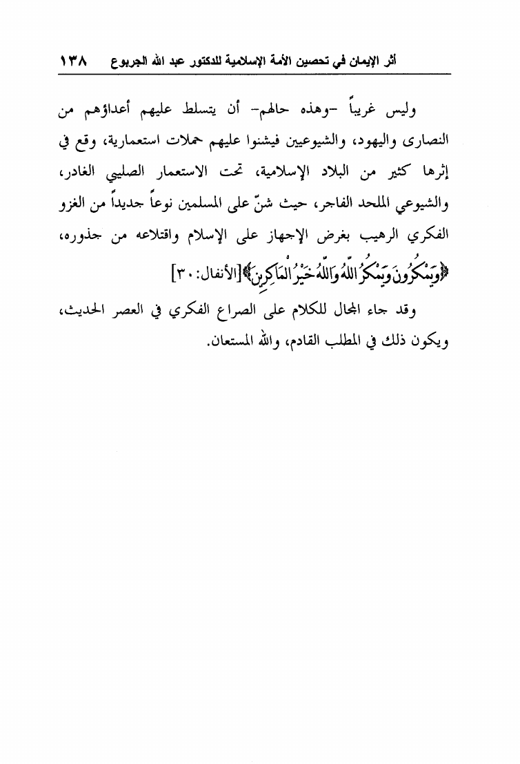 أثر الإيمان في تحصين الأمة الإسلامية ضد الأفكار الهدامة