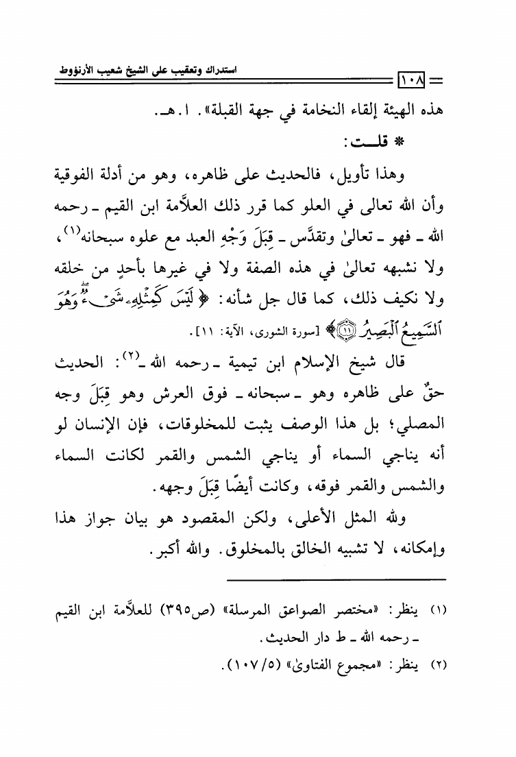 استدراك وتعقيب على الشيخ شعيب الأرناؤوط في تأويله بعض أحاديث الصفات