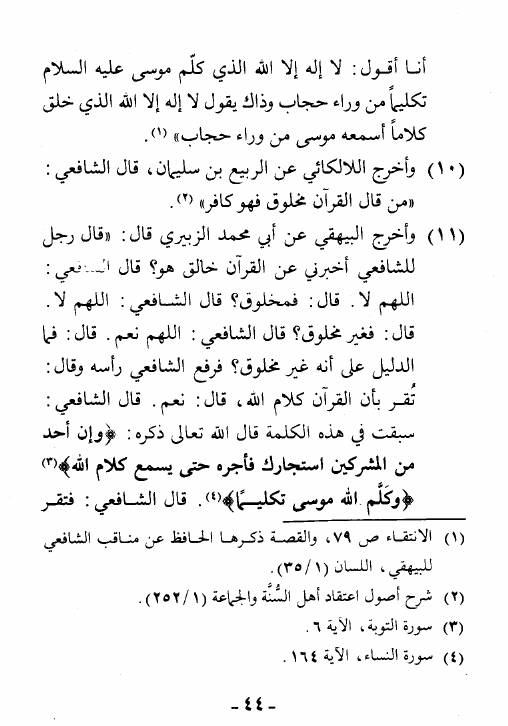 إعتقاد الأئمة الأربعة أبي حنيفة ومالك والشافعي وأحمد