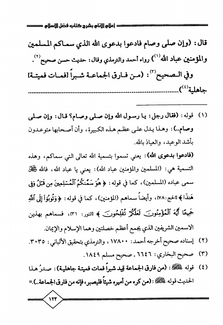إعلام الأنام بشرح كتاب فضل الإسلام