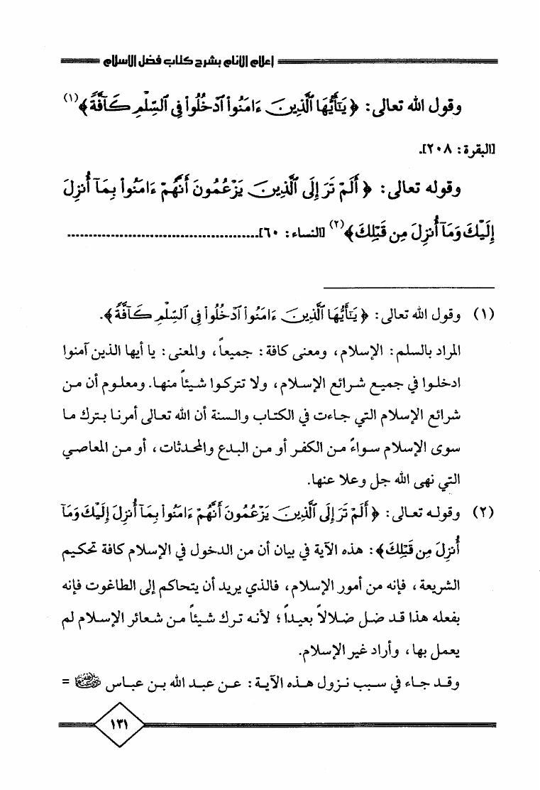 إعلام الأنام بشرح كتاب فضل الإسلام