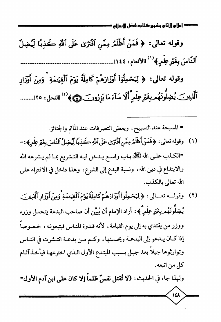 إعلام الأنام بشرح كتاب فضل الإسلام