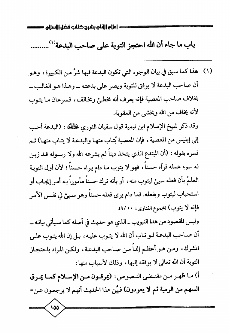 إعلام الأنام بشرح كتاب فضل الإسلام