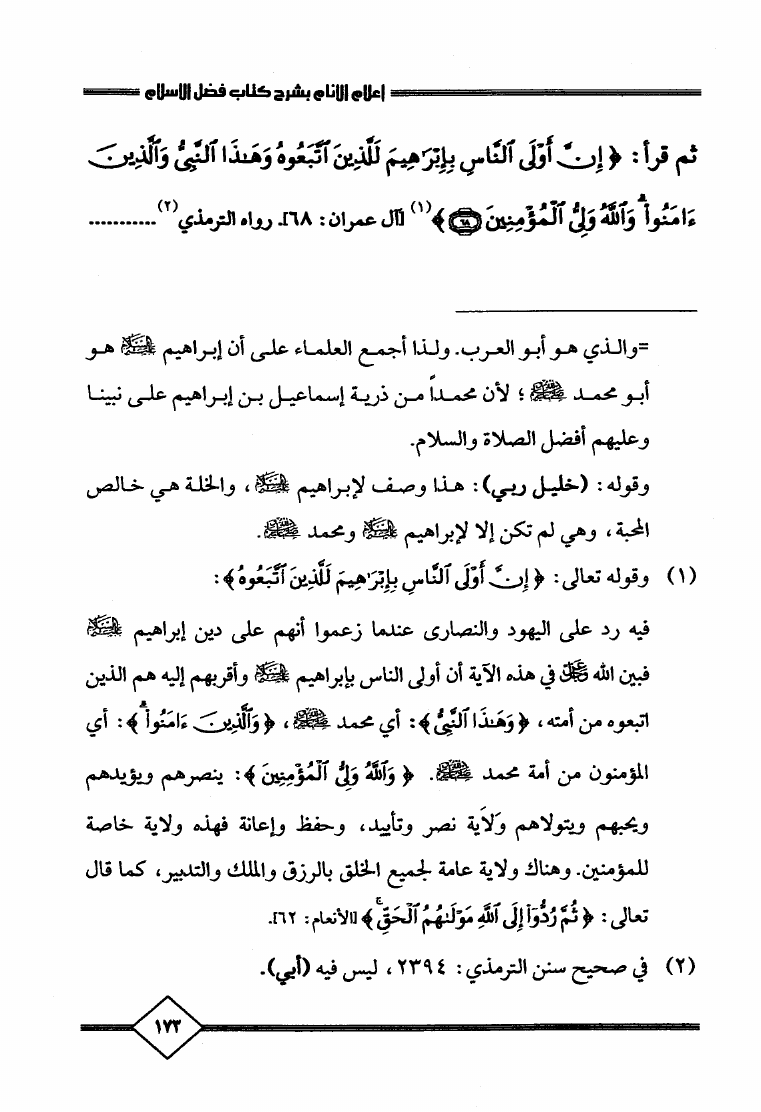 إعلام الأنام بشرح كتاب فضل الإسلام