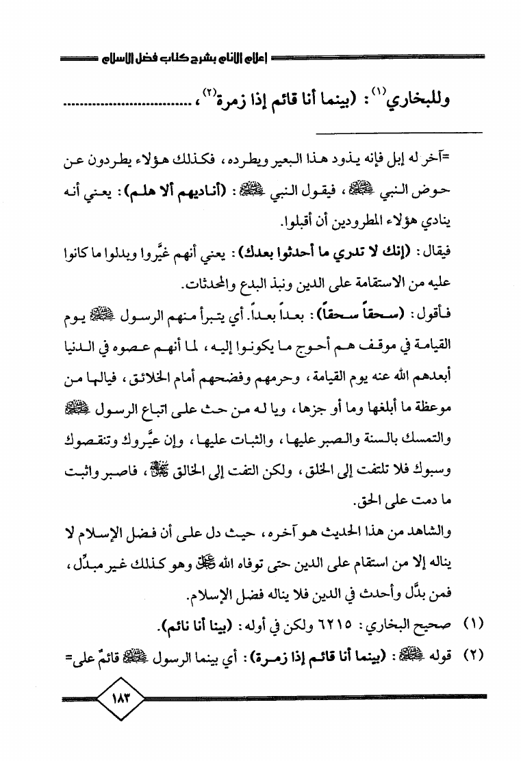 إعلام الأنام بشرح كتاب فضل الإسلام