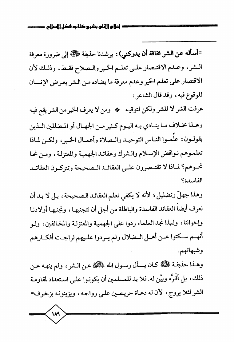 إعلام الأنام بشرح كتاب فضل الإسلام