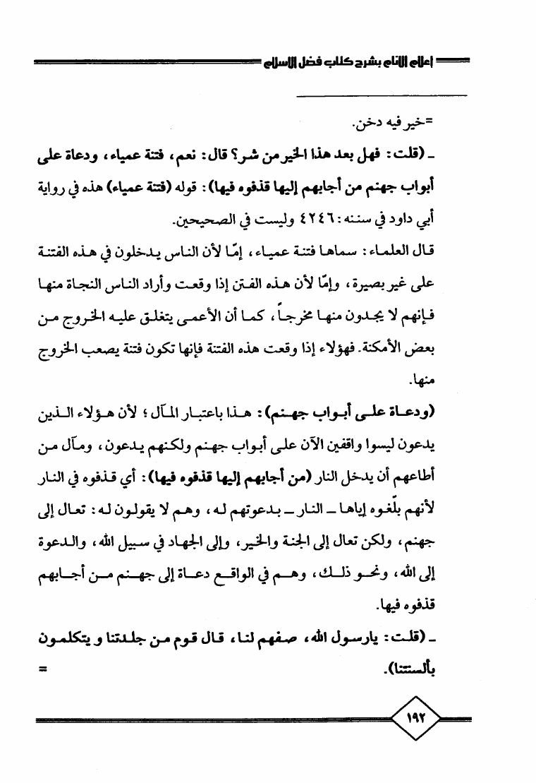 إعلام الأنام بشرح كتاب فضل الإسلام