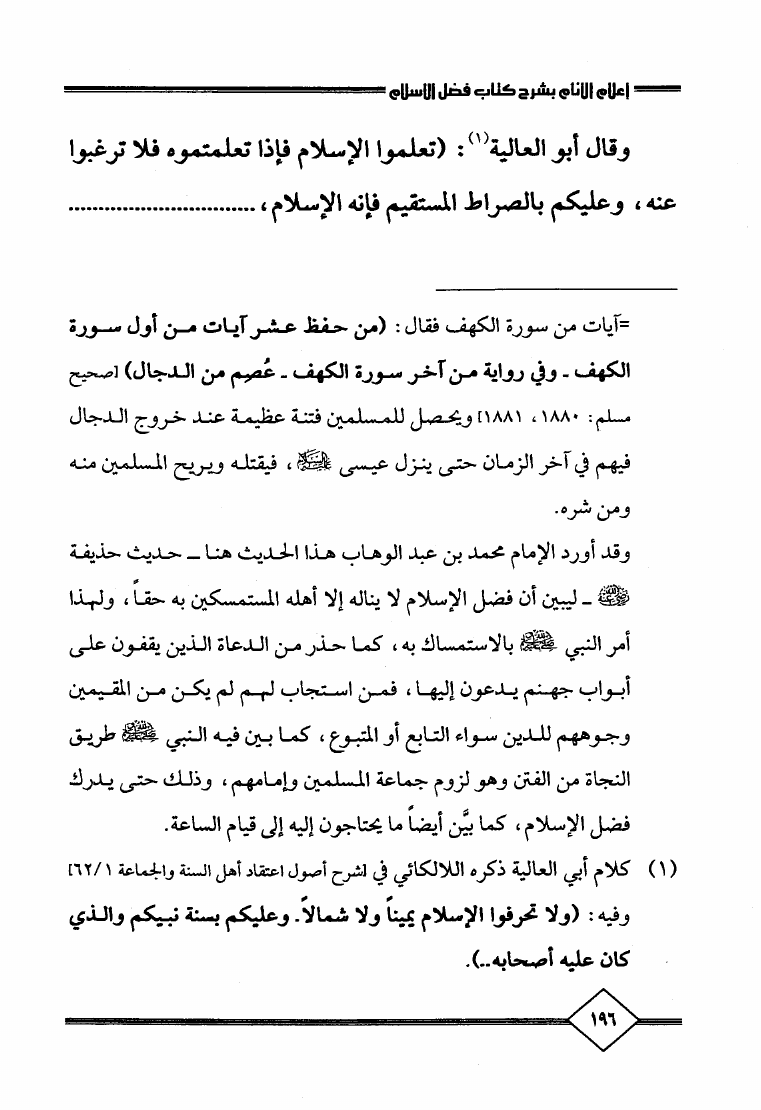إعلام الأنام بشرح كتاب فضل الإسلام