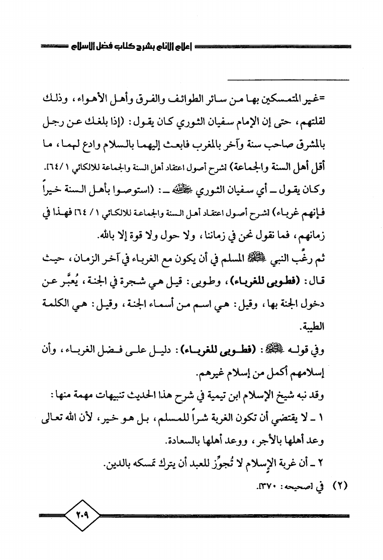إعلام الأنام بشرح كتاب فضل الإسلام