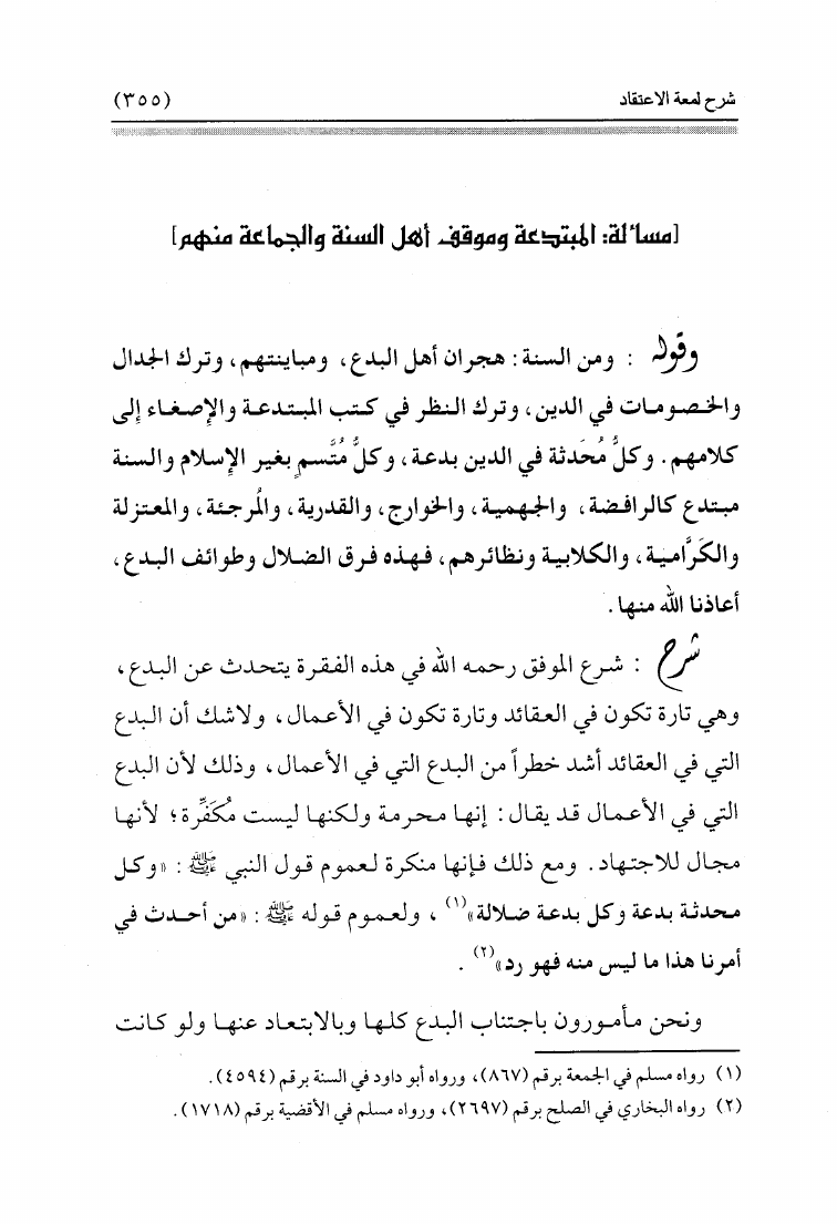 الإرشاد شرح لمعة الإعتقاد الهادي إلى سبيل الرشاد