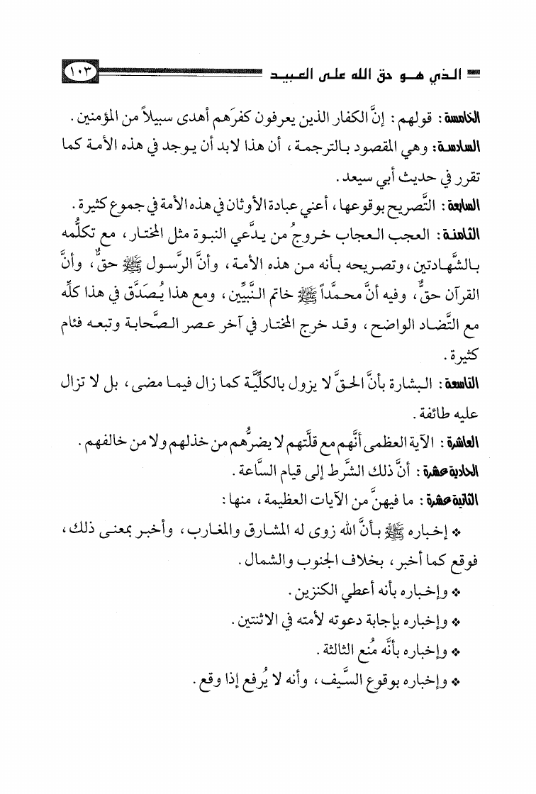 نام کتاب : الأصول الثلاثة وشروط الصلاة والقواعد الأربع وكتاب التوحيد وكشف الشبهات والواجبات المتحتمات والأربعون النووية نویسنده : محمد بن عبد الوهاب جلد : 1 صفحه : 103