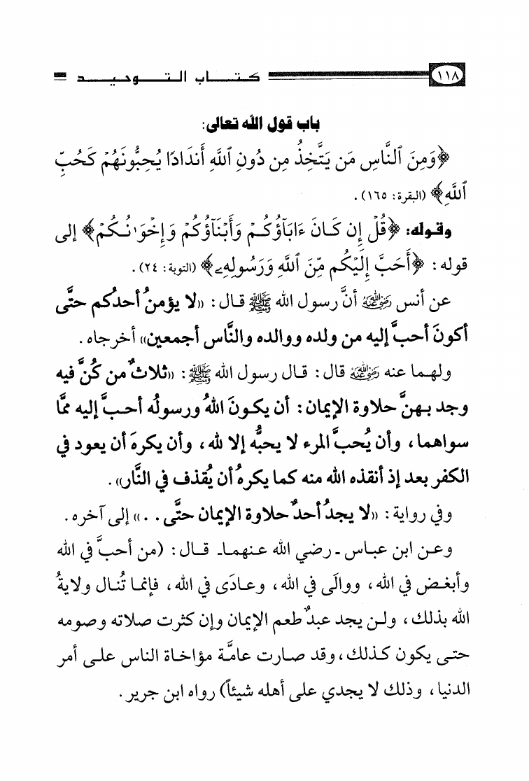 نام کتاب : الأصول الثلاثة وشروط الصلاة والقواعد الأربع وكتاب التوحيد وكشف الشبهات والواجبات المتحتمات والأربعون النووية نویسنده : محمد بن عبد الوهاب جلد : 1 صفحه : 118