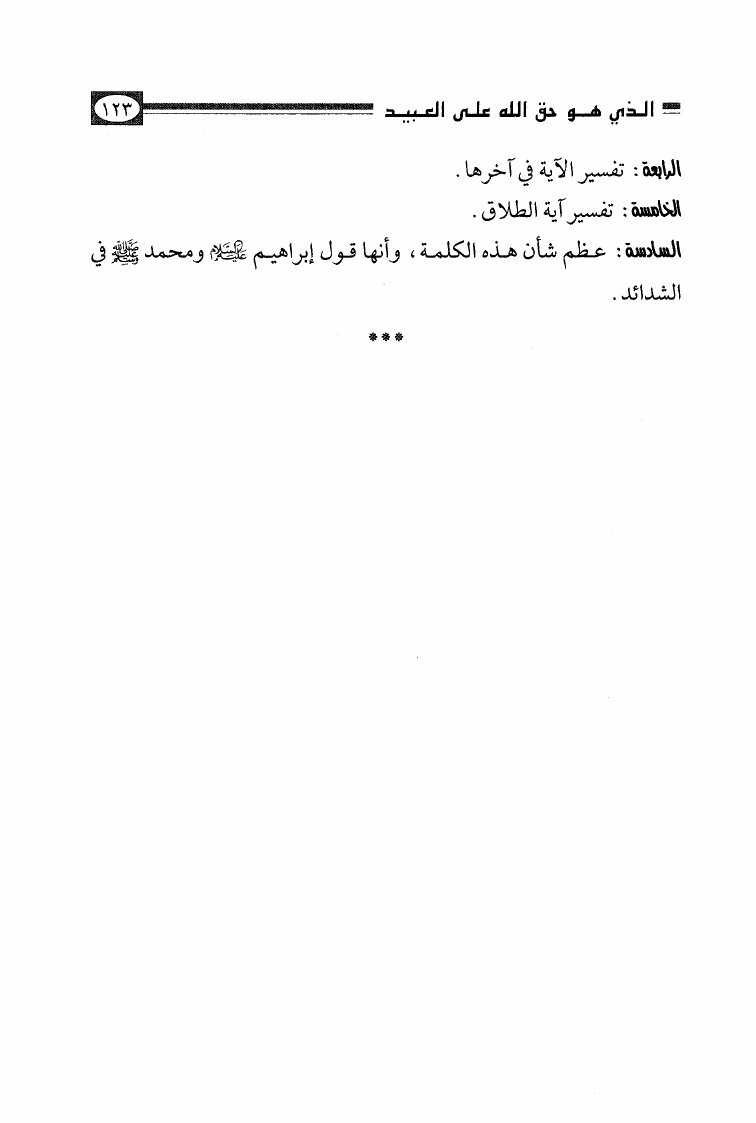 نام کتاب : الأصول الثلاثة وشروط الصلاة والقواعد الأربع وكتاب التوحيد وكشف الشبهات والواجبات المتحتمات والأربعون النووية نویسنده : محمد بن عبد الوهاب جلد : 1 صفحه : 123
