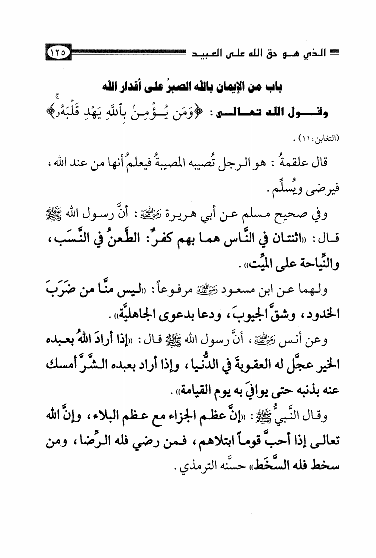 نام کتاب : الأصول الثلاثة وشروط الصلاة والقواعد الأربع وكتاب التوحيد وكشف الشبهات والواجبات المتحتمات والأربعون النووية نویسنده : محمد بن عبد الوهاب جلد : 1 صفحه : 125