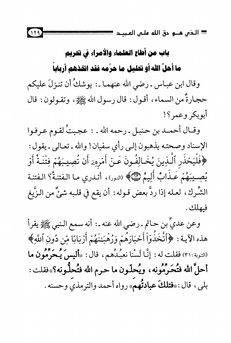 نام کتاب : الأصول الثلاثة وشروط الصلاة والقواعد الأربع وكتاب التوحيد وكشف الشبهات والواجبات المتحتمات والأربعون النووية نویسنده : محمد بن عبد الوهاب جلد : 1 صفحه : 129