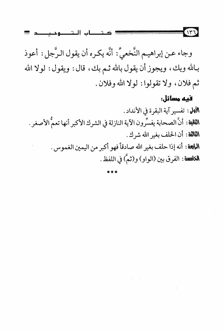 نام کتاب : الأصول الثلاثة وشروط الصلاة والقواعد الأربع وكتاب التوحيد وكشف الشبهات والواجبات المتحتمات والأربعون النووية نویسنده : محمد بن عبد الوهاب جلد : 1 صفحه : 136