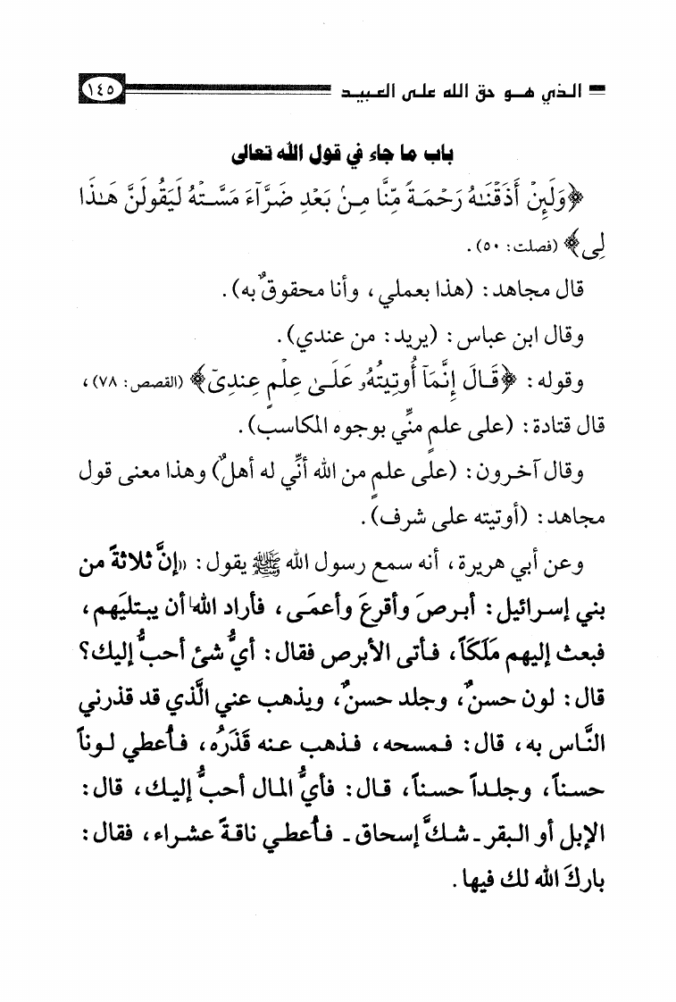 نام کتاب : الأصول الثلاثة وشروط الصلاة والقواعد الأربع وكتاب التوحيد وكشف الشبهات والواجبات المتحتمات والأربعون النووية نویسنده : محمد بن عبد الوهاب جلد : 1 صفحه : 145