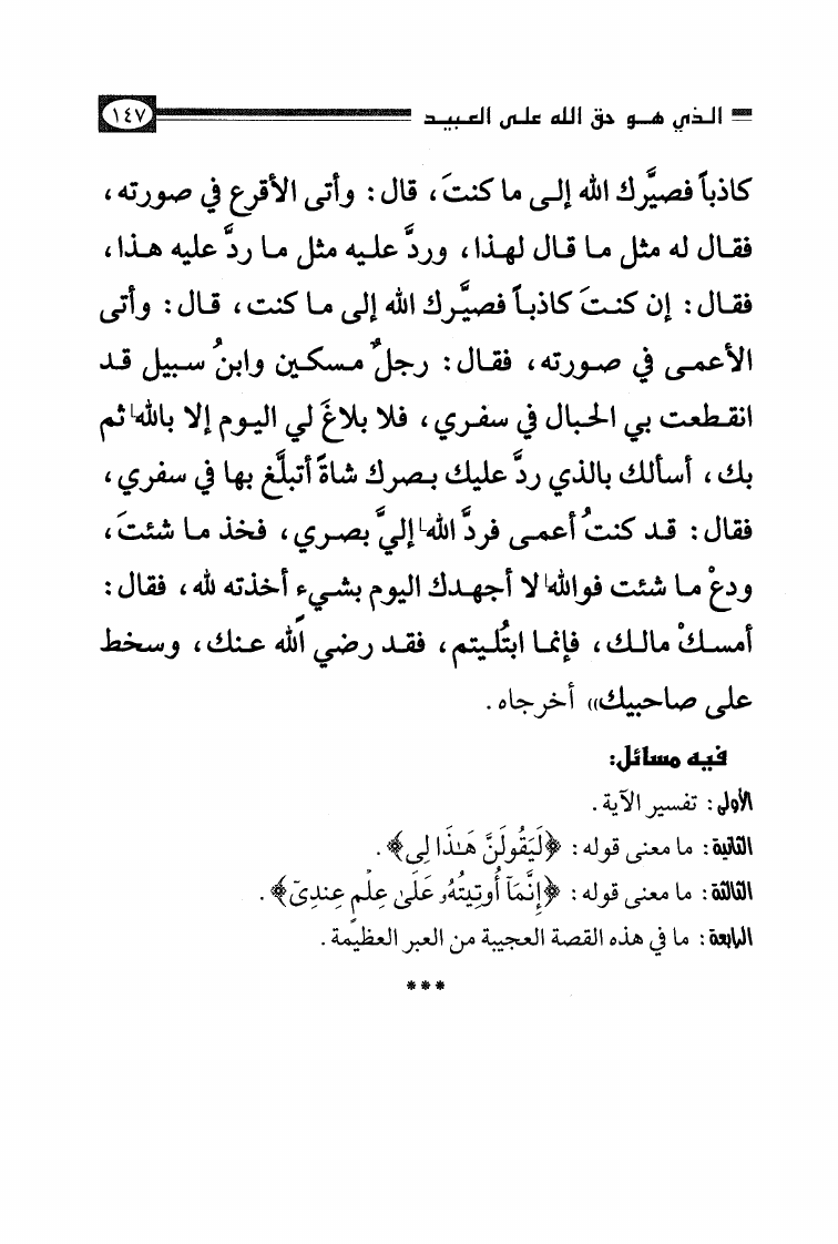 نام کتاب : الأصول الثلاثة وشروط الصلاة والقواعد الأربع وكتاب التوحيد وكشف الشبهات والواجبات المتحتمات والأربعون النووية نویسنده : محمد بن عبد الوهاب جلد : 1 صفحه : 147
