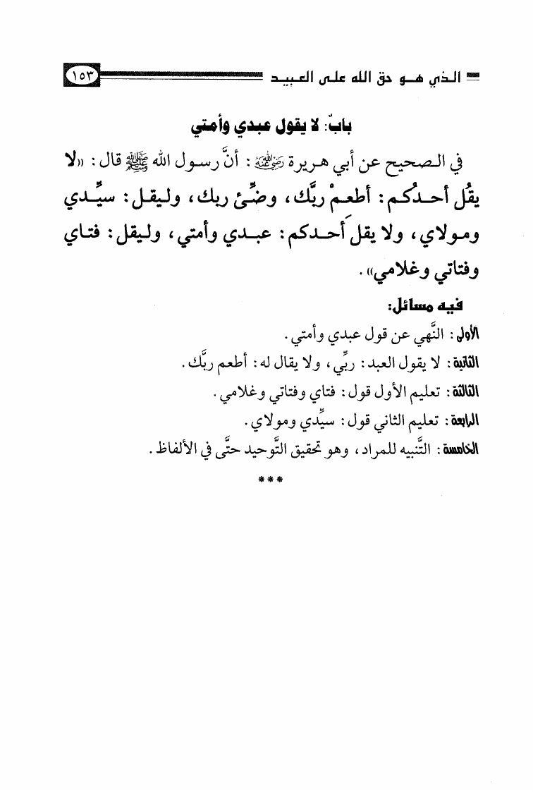 نام کتاب : الأصول الثلاثة وشروط الصلاة والقواعد الأربع وكتاب التوحيد وكشف الشبهات والواجبات المتحتمات والأربعون النووية نویسنده : محمد بن عبد الوهاب جلد : 1 صفحه : 153