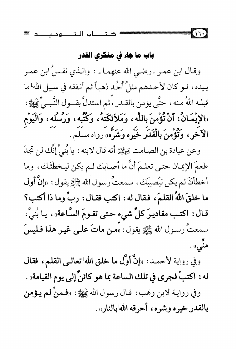 نام کتاب : الأصول الثلاثة وشروط الصلاة والقواعد الأربع وكتاب التوحيد وكشف الشبهات والواجبات المتحتمات والأربعون النووية نویسنده : محمد بن عبد الوهاب جلد : 1 صفحه : 160