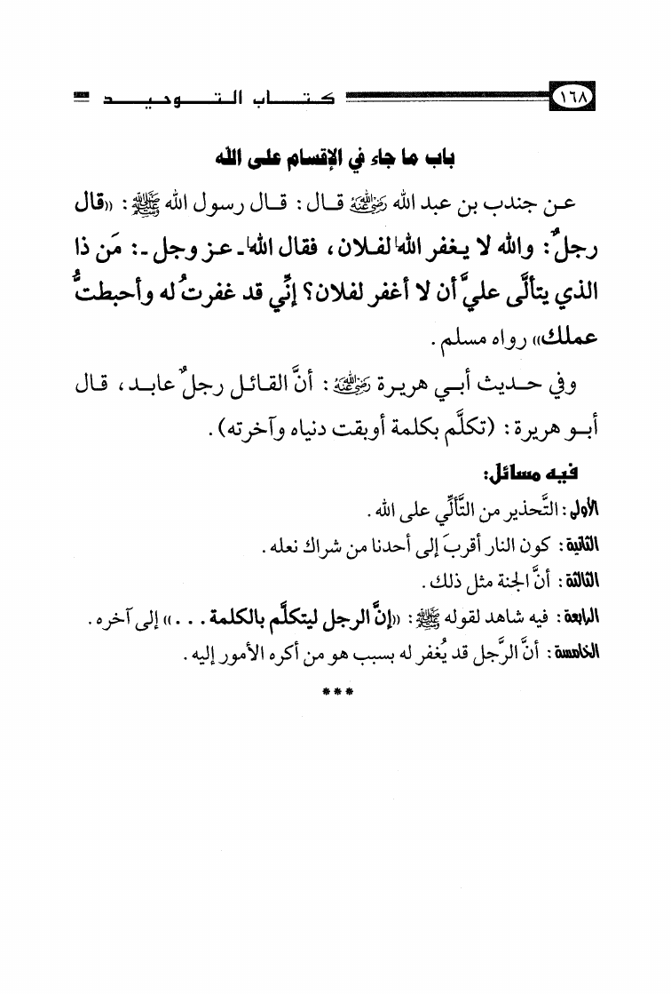 نام کتاب : الأصول الثلاثة وشروط الصلاة والقواعد الأربع وكتاب التوحيد وكشف الشبهات والواجبات المتحتمات والأربعون النووية نویسنده : محمد بن عبد الوهاب جلد : 1 صفحه : 168