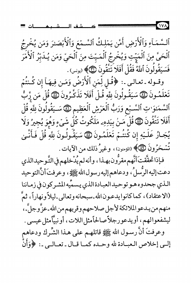 نام کتاب : الأصول الثلاثة وشروط الصلاة والقواعد الأربع وكتاب التوحيد وكشف الشبهات والواجبات المتحتمات والأربعون النووية نویسنده : محمد بن عبد الوهاب جلد : 1 صفحه : 178