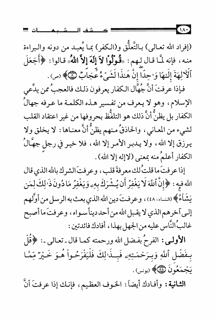 نام کتاب : الأصول الثلاثة وشروط الصلاة والقواعد الأربع وكتاب التوحيد وكشف الشبهات والواجبات المتحتمات والأربعون النووية نویسنده : محمد بن عبد الوهاب جلد : 1 صفحه : 180