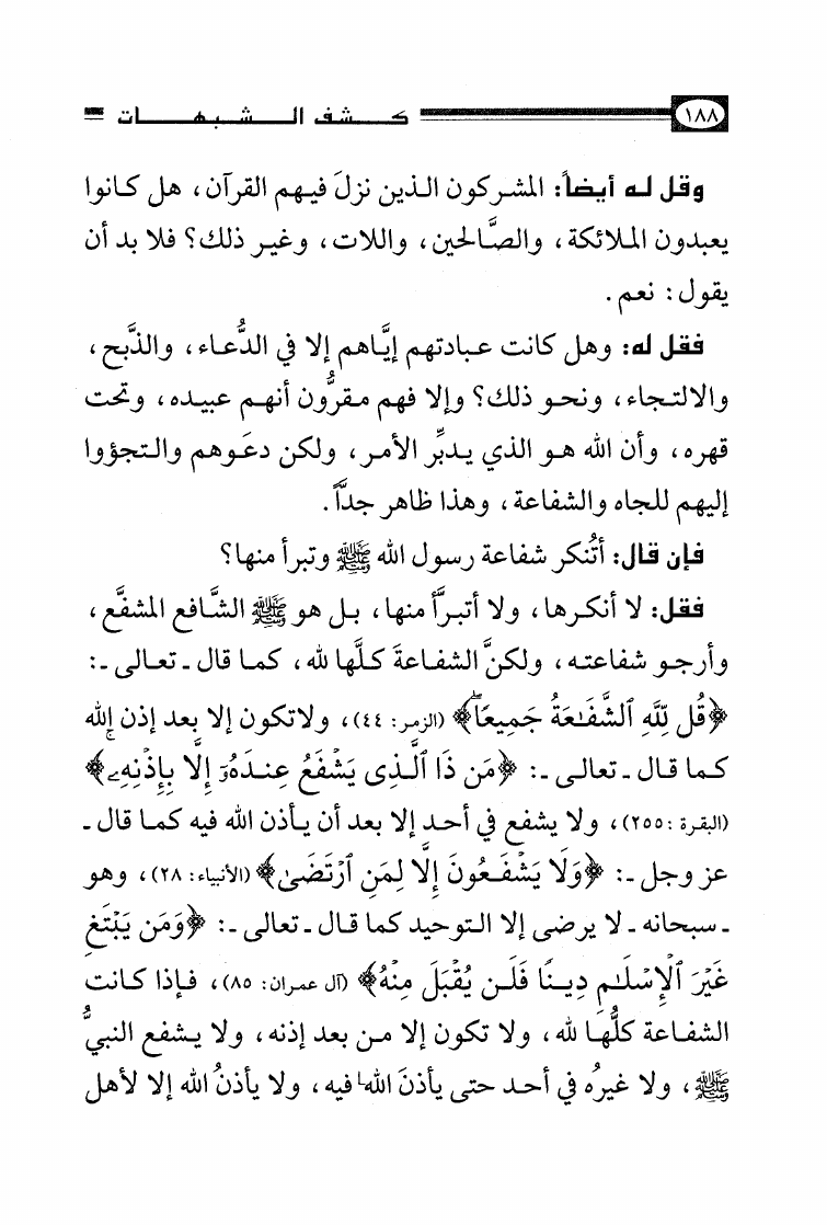 نام کتاب : الأصول الثلاثة وشروط الصلاة والقواعد الأربع وكتاب التوحيد وكشف الشبهات والواجبات المتحتمات والأربعون النووية نویسنده : محمد بن عبد الوهاب جلد : 1 صفحه : 188