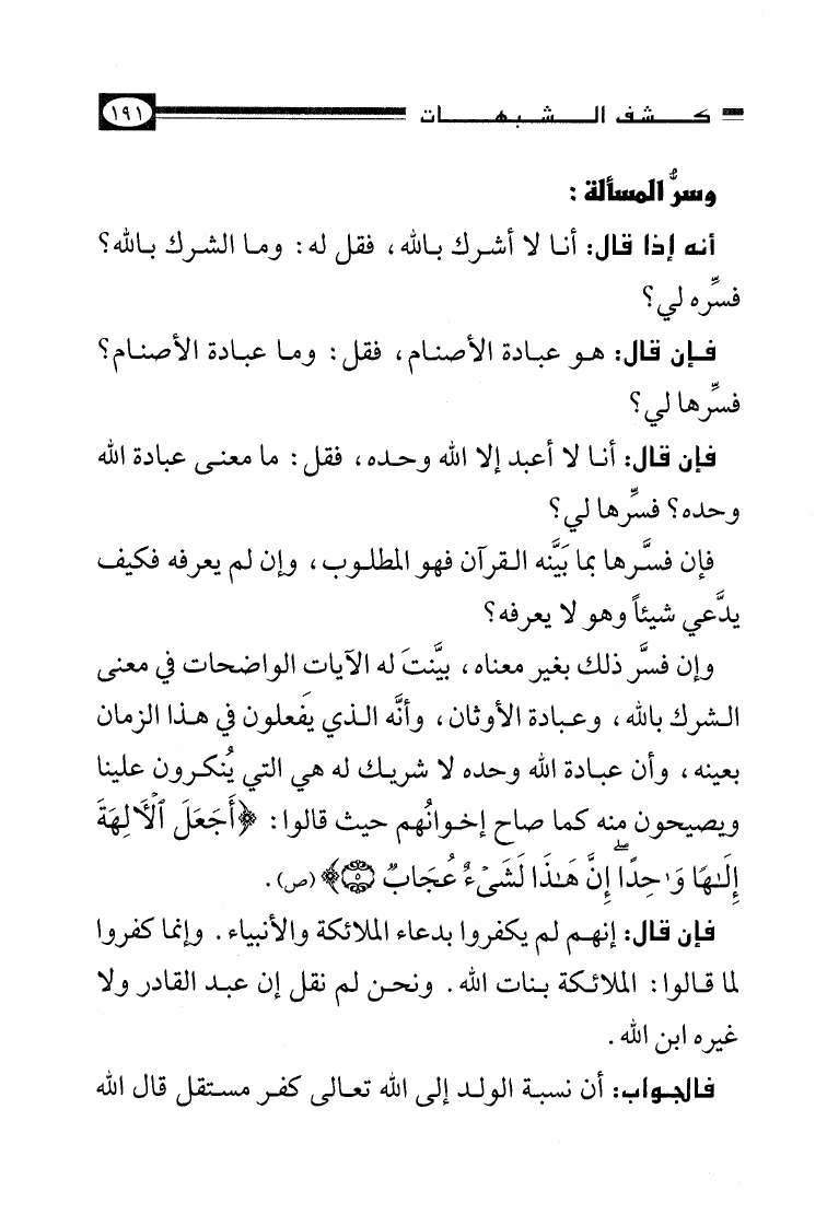 نام کتاب : الأصول الثلاثة وشروط الصلاة والقواعد الأربع وكتاب التوحيد وكشف الشبهات والواجبات المتحتمات والأربعون النووية نویسنده : محمد بن عبد الوهاب جلد : 1 صفحه : 191
