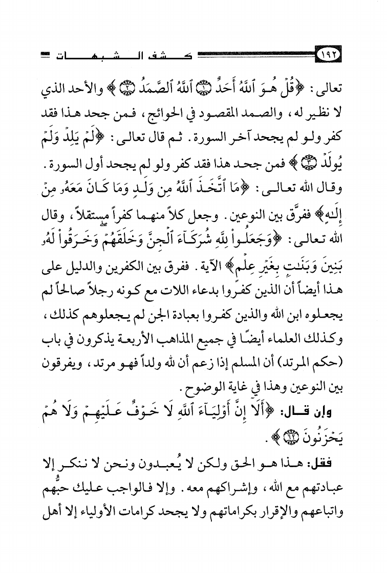 نام کتاب : الأصول الثلاثة وشروط الصلاة والقواعد الأربع وكتاب التوحيد وكشف الشبهات والواجبات المتحتمات والأربعون النووية نویسنده : محمد بن عبد الوهاب جلد : 1 صفحه : 192