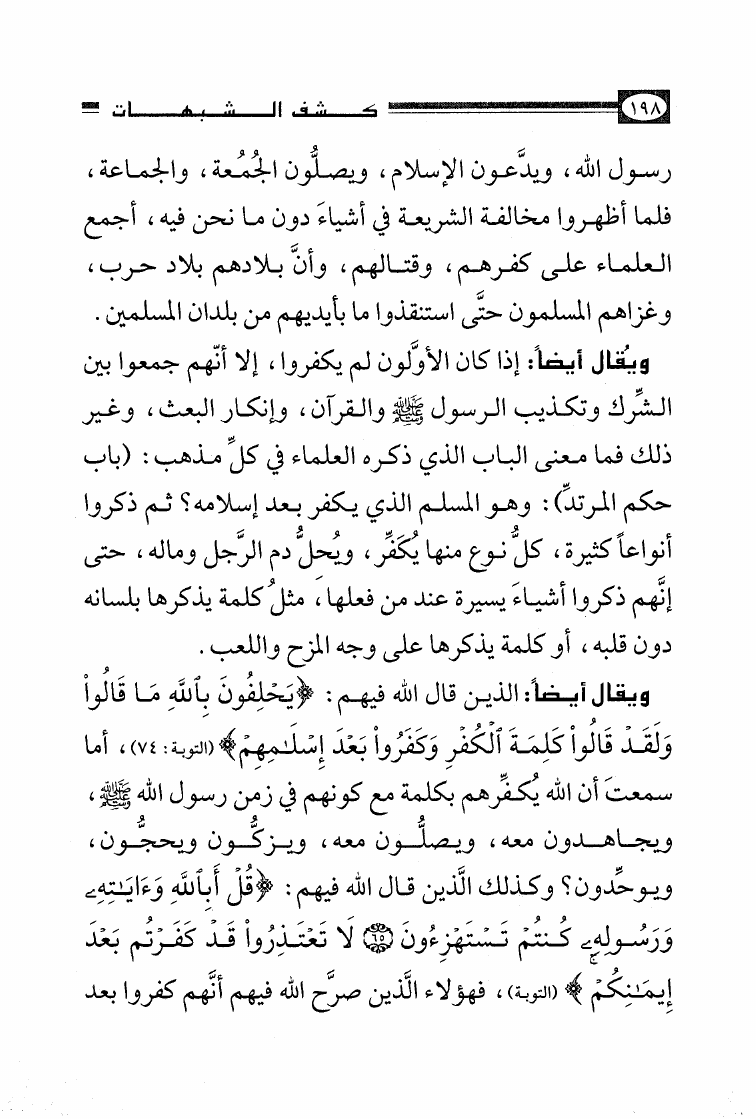 نام کتاب : الأصول الثلاثة وشروط الصلاة والقواعد الأربع وكتاب التوحيد وكشف الشبهات والواجبات المتحتمات والأربعون النووية نویسنده : محمد بن عبد الوهاب جلد : 1 صفحه : 198