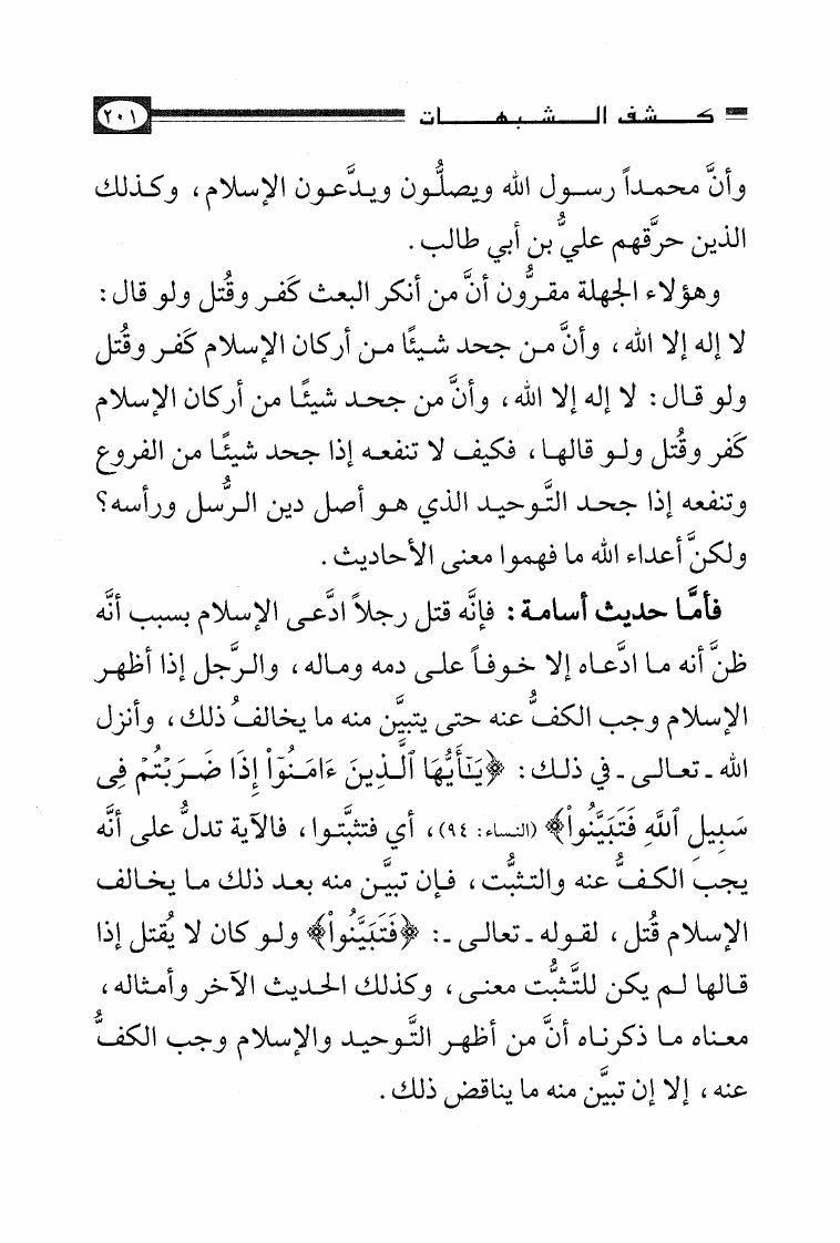 نام کتاب : الأصول الثلاثة وشروط الصلاة والقواعد الأربع وكتاب التوحيد وكشف الشبهات والواجبات المتحتمات والأربعون النووية نویسنده : محمد بن عبد الوهاب جلد : 1 صفحه : 201