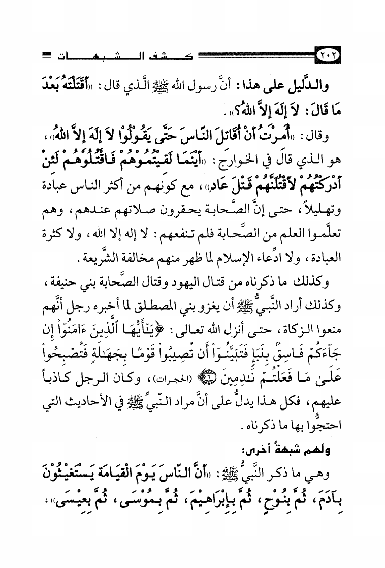 نام کتاب : الأصول الثلاثة وشروط الصلاة والقواعد الأربع وكتاب التوحيد وكشف الشبهات والواجبات المتحتمات والأربعون النووية نویسنده : محمد بن عبد الوهاب جلد : 1 صفحه : 202