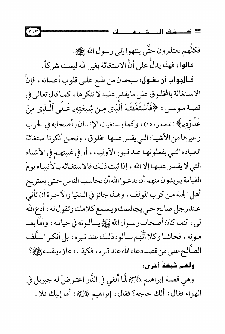 نام کتاب : الأصول الثلاثة وشروط الصلاة والقواعد الأربع وكتاب التوحيد وكشف الشبهات والواجبات المتحتمات والأربعون النووية نویسنده : محمد بن عبد الوهاب جلد : 1 صفحه : 203