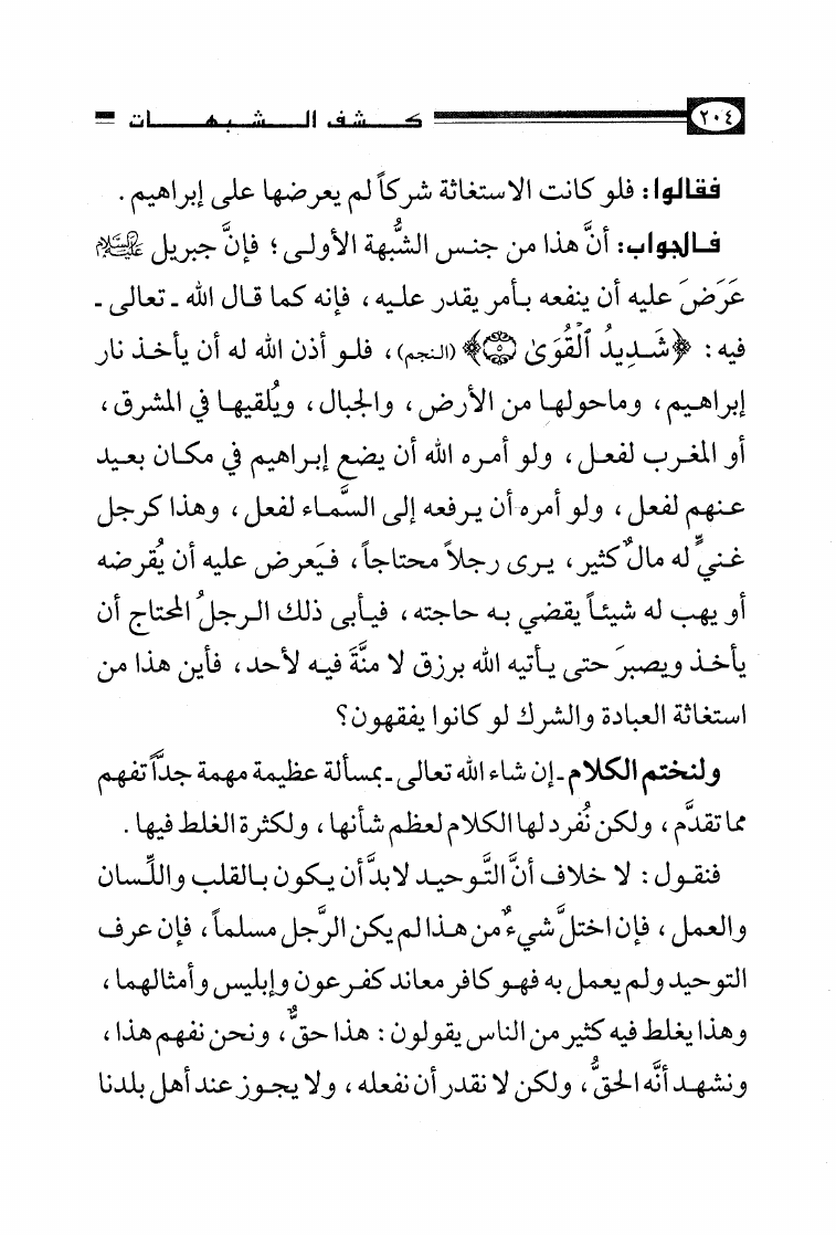 نام کتاب : الأصول الثلاثة وشروط الصلاة والقواعد الأربع وكتاب التوحيد وكشف الشبهات والواجبات المتحتمات والأربعون النووية نویسنده : محمد بن عبد الوهاب جلد : 1 صفحه : 204