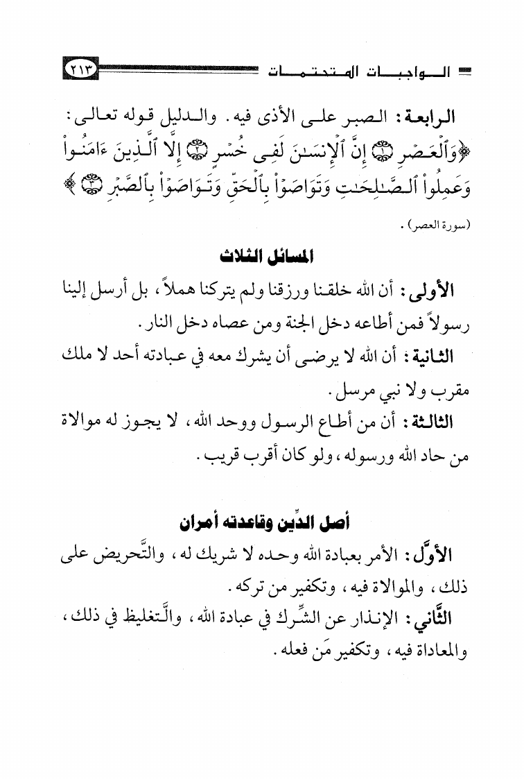 نام کتاب : الأصول الثلاثة وشروط الصلاة والقواعد الأربع وكتاب التوحيد وكشف الشبهات والواجبات المتحتمات والأربعون النووية نویسنده : محمد بن عبد الوهاب جلد : 1 صفحه : 213