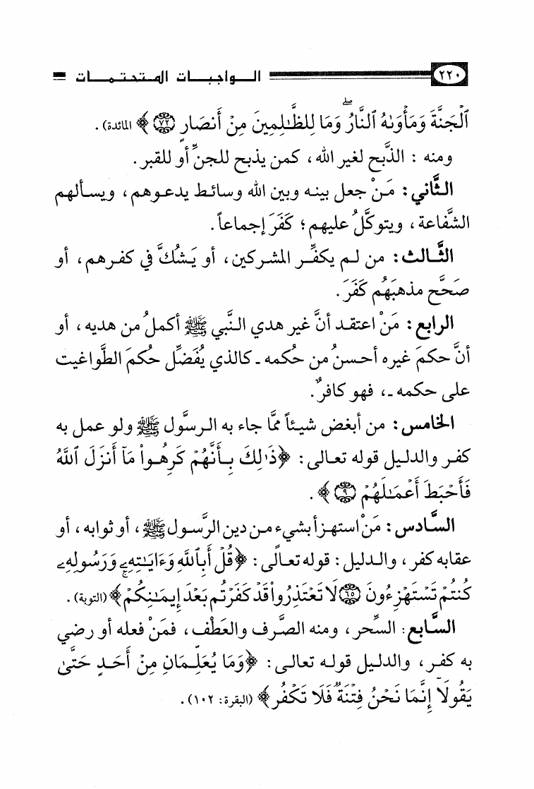 نام کتاب : الأصول الثلاثة وشروط الصلاة والقواعد الأربع وكتاب التوحيد وكشف الشبهات والواجبات المتحتمات والأربعون النووية نویسنده : محمد بن عبد الوهاب جلد : 1 صفحه : 220