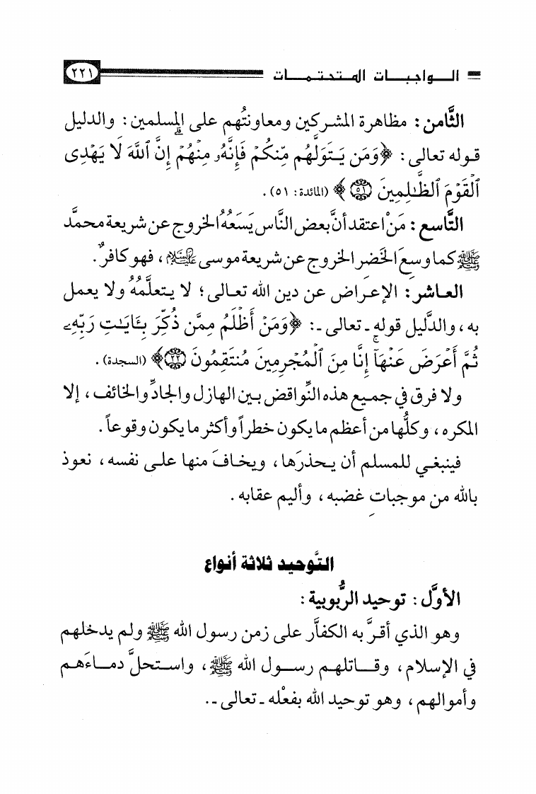 نام کتاب : الأصول الثلاثة وشروط الصلاة والقواعد الأربع وكتاب التوحيد وكشف الشبهات والواجبات المتحتمات والأربعون النووية نویسنده : محمد بن عبد الوهاب جلد : 1 صفحه : 221