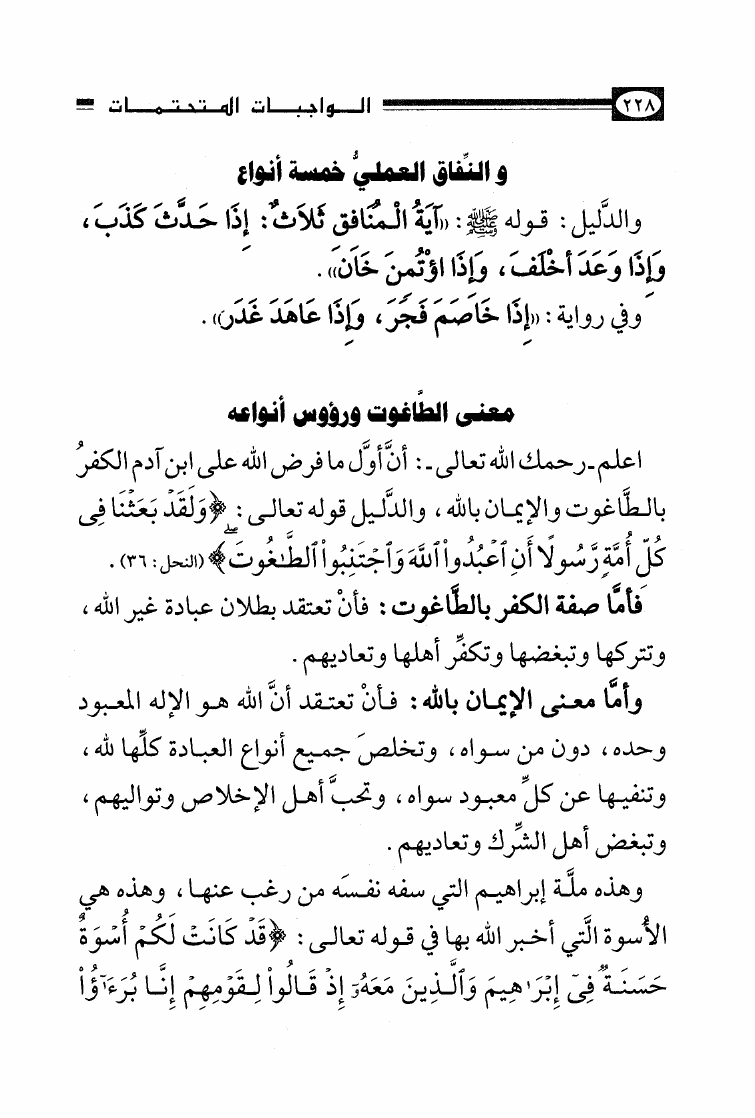 نام کتاب : الأصول الثلاثة وشروط الصلاة والقواعد الأربع وكتاب التوحيد وكشف الشبهات والواجبات المتحتمات والأربعون النووية نویسنده : محمد بن عبد الوهاب جلد : 1 صفحه : 228