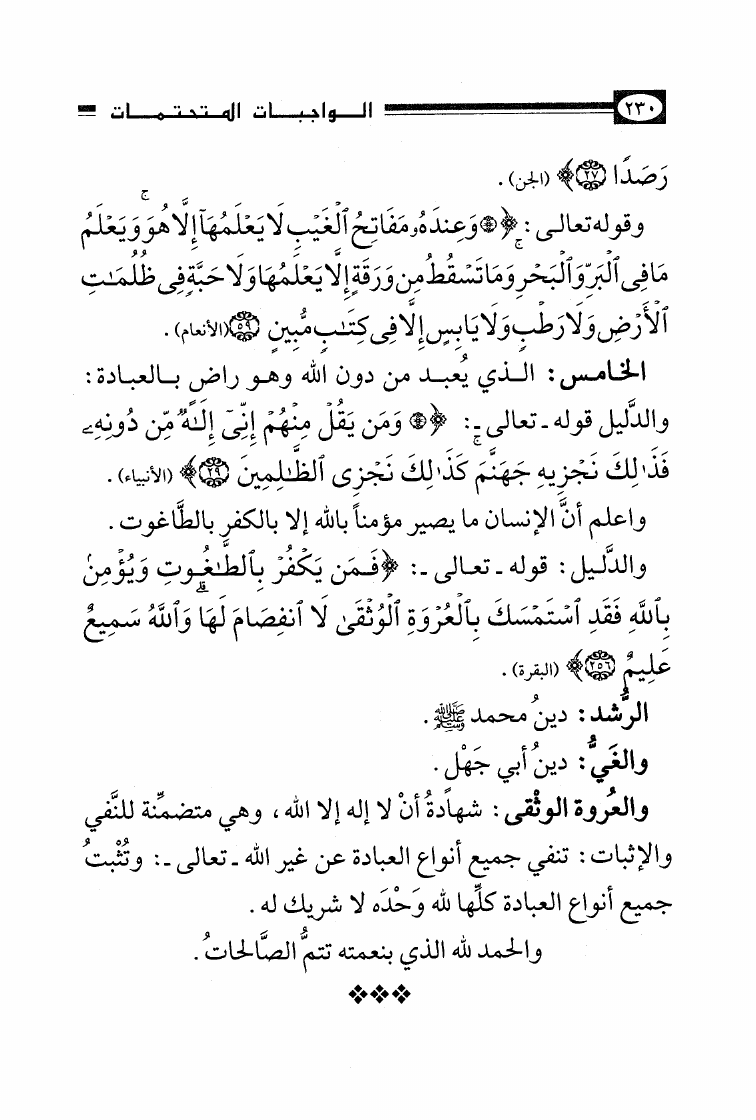 نام کتاب : الأصول الثلاثة وشروط الصلاة والقواعد الأربع وكتاب التوحيد وكشف الشبهات والواجبات المتحتمات والأربعون النووية نویسنده : محمد بن عبد الوهاب جلد : 1 صفحه : 230