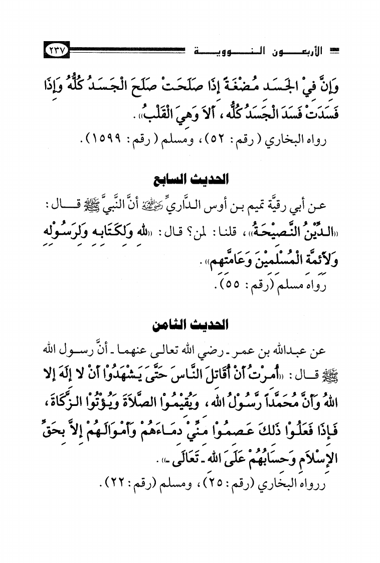 نام کتاب : الأصول الثلاثة وشروط الصلاة والقواعد الأربع وكتاب التوحيد وكشف الشبهات والواجبات المتحتمات والأربعون النووية نویسنده : محمد بن عبد الوهاب جلد : 1 صفحه : 237