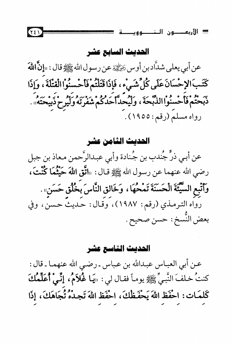 نام کتاب : الأصول الثلاثة وشروط الصلاة والقواعد الأربع وكتاب التوحيد وكشف الشبهات والواجبات المتحتمات والأربعون النووية نویسنده : محمد بن عبد الوهاب جلد : 1 صفحه : 241
