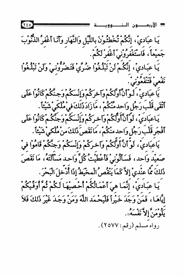 نام کتاب : الأصول الثلاثة وشروط الصلاة والقواعد الأربع وكتاب التوحيد وكشف الشبهات والواجبات المتحتمات والأربعون النووية نویسنده : محمد بن عبد الوهاب جلد : 1 صفحه : 245