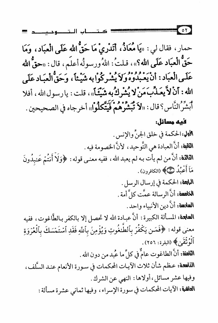 نام کتاب : الأصول الثلاثة وشروط الصلاة والقواعد الأربع وكتاب التوحيد وكشف الشبهات والواجبات المتحتمات والأربعون النووية نویسنده : محمد بن عبد الوهاب جلد : 1 صفحه : 52
