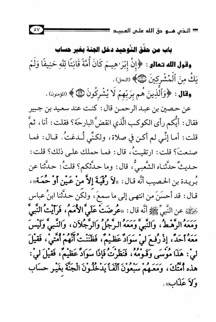 نام کتاب : الأصول الثلاثة وشروط الصلاة والقواعد الأربع وكتاب التوحيد وكشف الشبهات والواجبات المتحتمات والأربعون النووية نویسنده : محمد بن عبد الوهاب جلد : 1 صفحه : 57