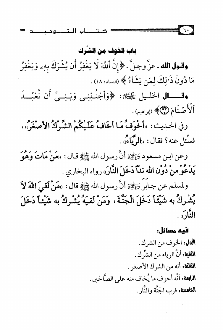 نام کتاب : الأصول الثلاثة وشروط الصلاة والقواعد الأربع وكتاب التوحيد وكشف الشبهات والواجبات المتحتمات والأربعون النووية نویسنده : محمد بن عبد الوهاب جلد : 1 صفحه : 60