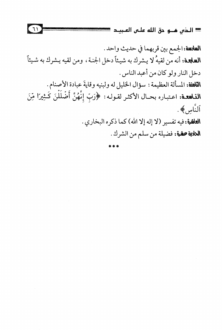 نام کتاب : الأصول الثلاثة وشروط الصلاة والقواعد الأربع وكتاب التوحيد وكشف الشبهات والواجبات المتحتمات والأربعون النووية نویسنده : محمد بن عبد الوهاب جلد : 1 صفحه : 61