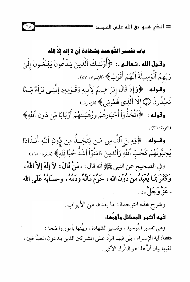 نام کتاب : الأصول الثلاثة وشروط الصلاة والقواعد الأربع وكتاب التوحيد وكشف الشبهات والواجبات المتحتمات والأربعون النووية نویسنده : محمد بن عبد الوهاب جلد : 1 صفحه : 65