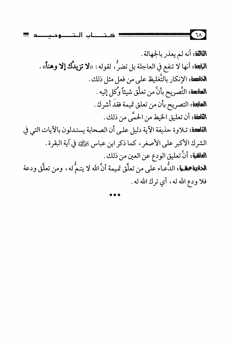 نام کتاب : الأصول الثلاثة وشروط الصلاة والقواعد الأربع وكتاب التوحيد وكشف الشبهات والواجبات المتحتمات والأربعون النووية نویسنده : محمد بن عبد الوهاب جلد : 1 صفحه : 68