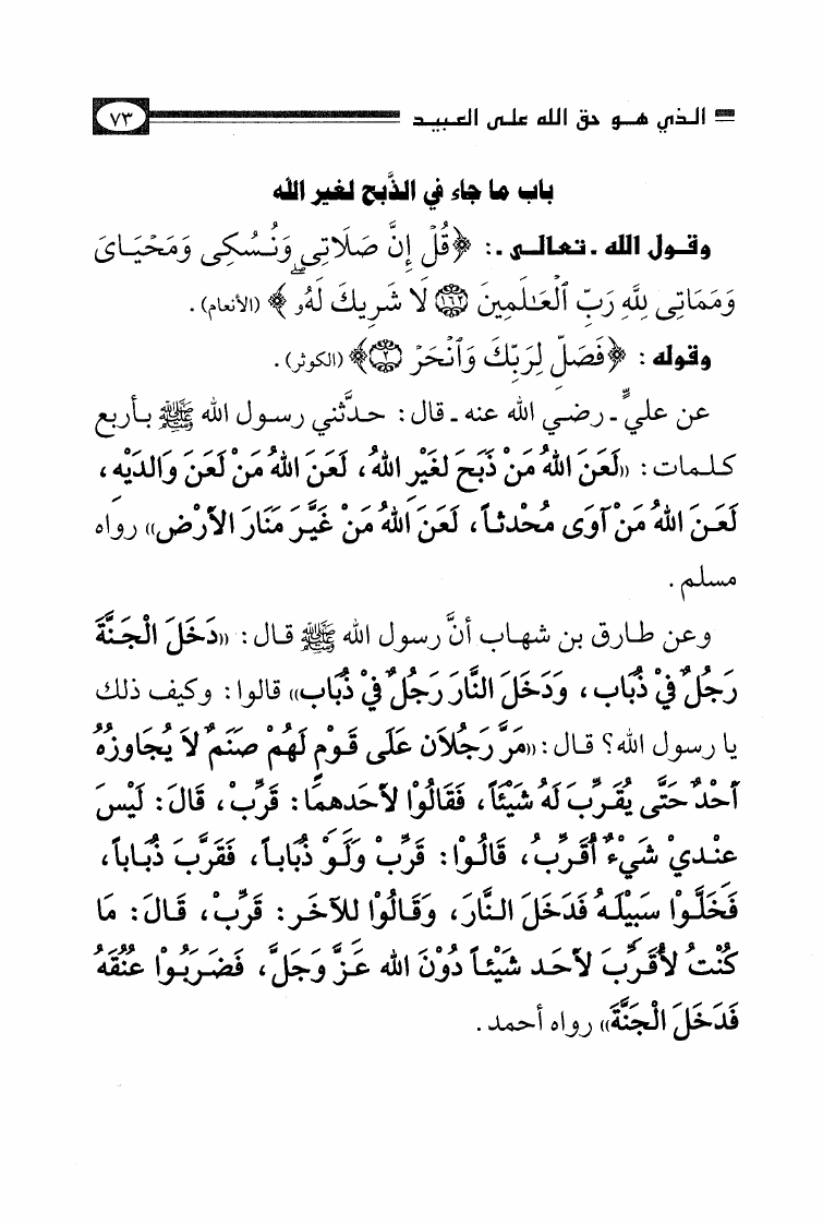 نام کتاب : الأصول الثلاثة وشروط الصلاة والقواعد الأربع وكتاب التوحيد وكشف الشبهات والواجبات المتحتمات والأربعون النووية نویسنده : محمد بن عبد الوهاب جلد : 1 صفحه : 73